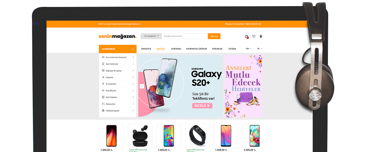 Sanal mağazanız mobil cihazlar ve tablet cihazları için tamamen uyumludur. Online trafiğin %80'inin gerçekleştiği mobil cihazlar ile web siteniz tamamen uyumlu çalışır ve potansiyel satışları kaçırmadan sonuçlandırabilirsiniz.